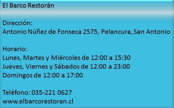 Desde San Antonio hacia Isla Negra, en la región de Valparaíso, poco antes de llegar a Cartagena, dimos con El Barco. Un restorán que por fuera no dice mucho pero que nos atrajo por la vista al mar y porque ya estábamos pasados en la hora de comer y era meritorio hacer una parada.