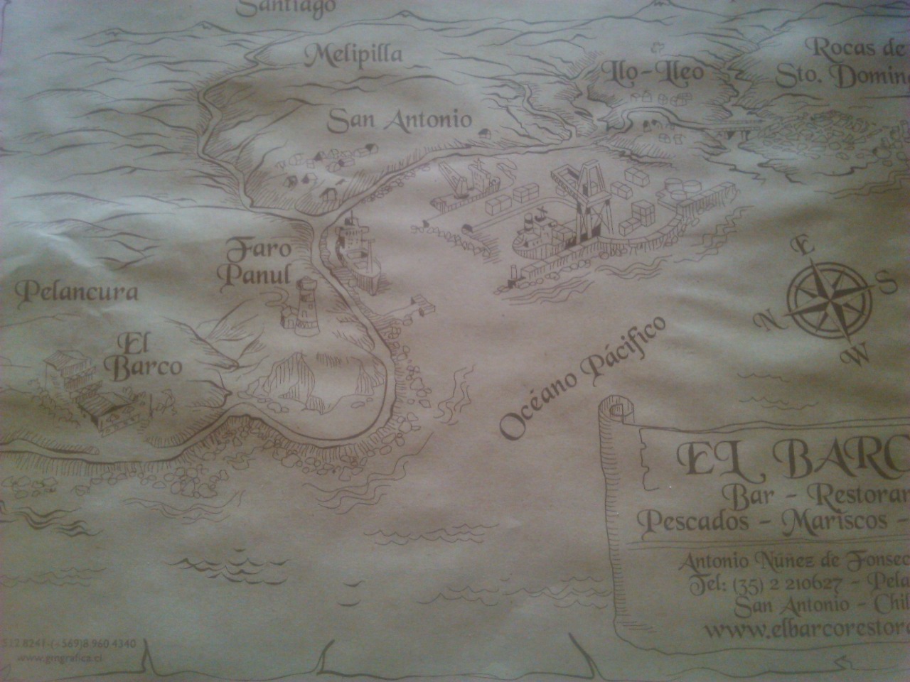 Desde San Antonio hacia Isla Negra, en la región de Valparaíso, poco antes de llegar a Cartagena, dimos con El Barco. Un restorán que por fuera no dice mucho pero que nos atrajo por la vista al mar y porque ya estábamos pasados en la hora de comer y era meritorio hacer una parada.